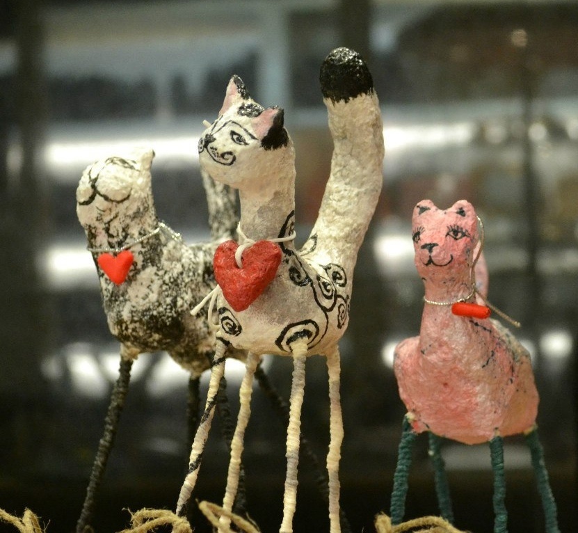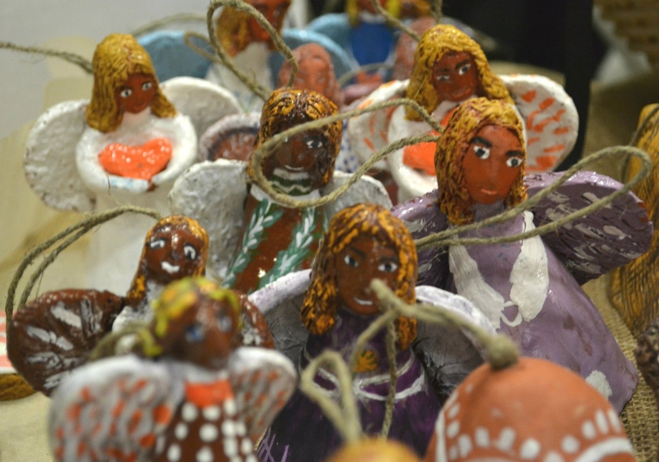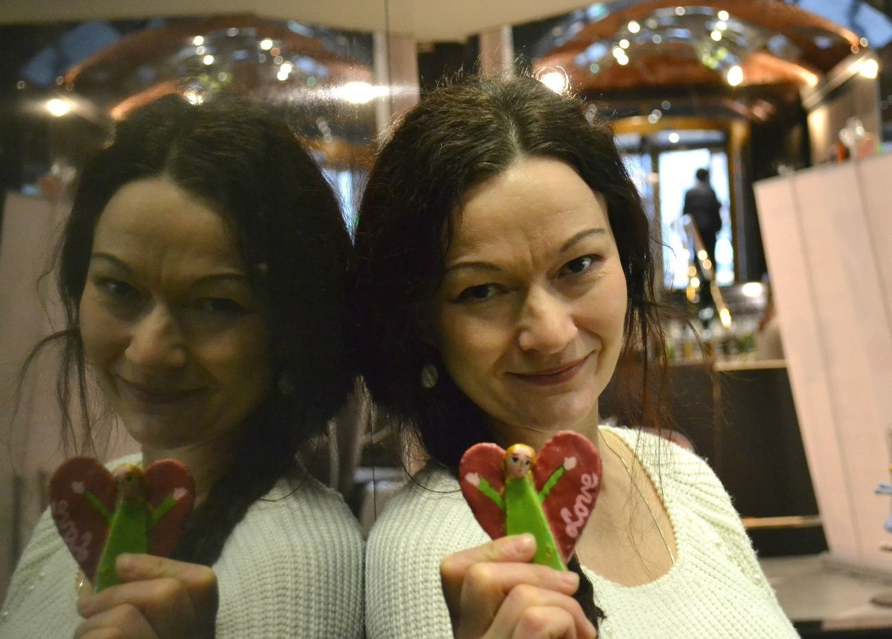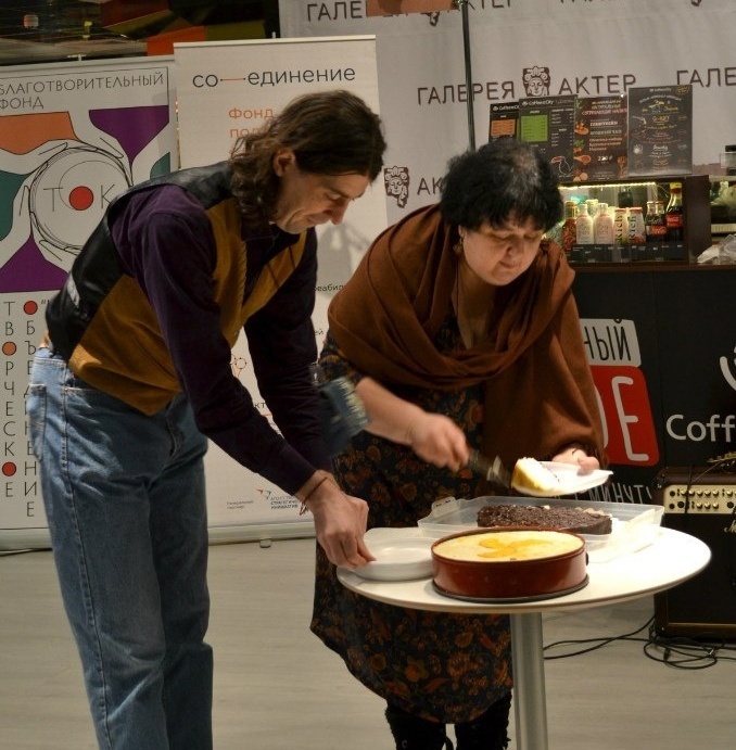 Мне за них и сейчас не стыдно. Керамические ангелы у нас получились немного эфиопские, но не менее симпатичные от этого. Первые колокольчики-конусы. А еще мы делали тогда фигурки из папье-маше. Кошки – ко дню всех влюбленных. Пряники-сердечки от Маши Бояркиной. И керамические сердечки от Маши Черновой. Это она написала на одном из них «Бог есть любовь». Мы на ярмарке в самом центре Москвы – в галерее Актер устроили праздник. Слепые кулинары Сережа Леликов и Галя Карнаухова приготовили потрясающий торт «Птичье молоко» на агар-агаре. И наша первая слепоглуховская группа пришла попраздновать. Все лихо отплясывали, даже бабушка Люда и Ираида. А Гена Аляпин станцевал свой коронный танец ча-ча-ча. И сама Инна Бондарь @innabondari выступила с другом-аккомпаниатором.