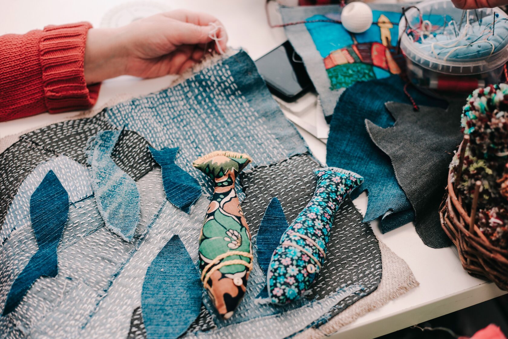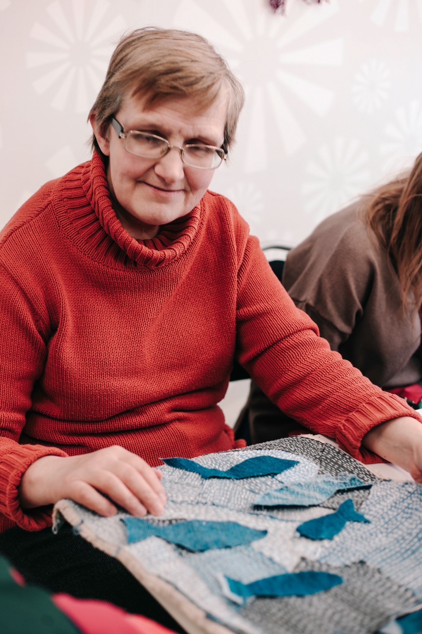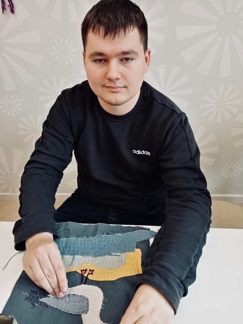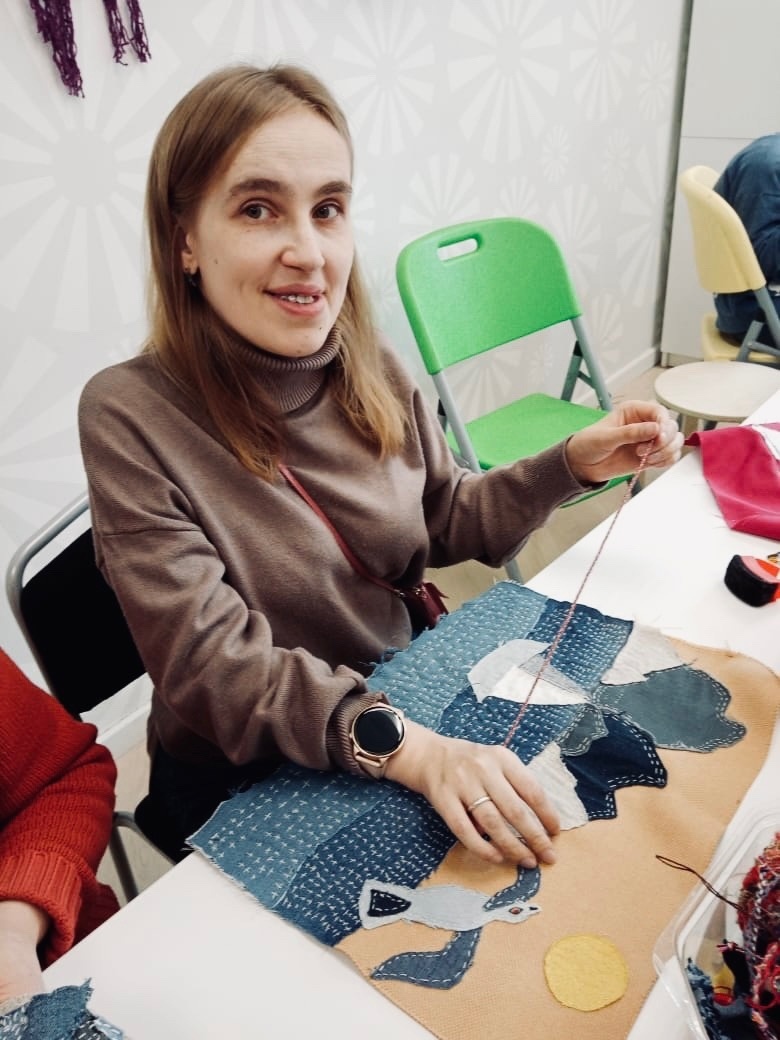 В текстильной мастерской на улице Грина 1/1 вместе с куратором Светланой подопечные Благотворительного Фонда «Круг» внимательно вышивают строчку за строчкой.