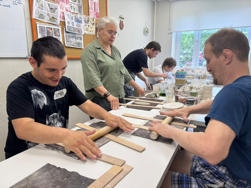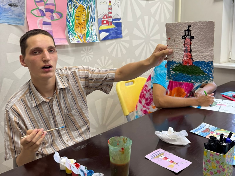 Смена началась с экскурсии по мастерской. Ребята познакомились со всеми активностями, представленными в нашем фонде, и приступили к занятиям в группах дневной полезной занятости.
