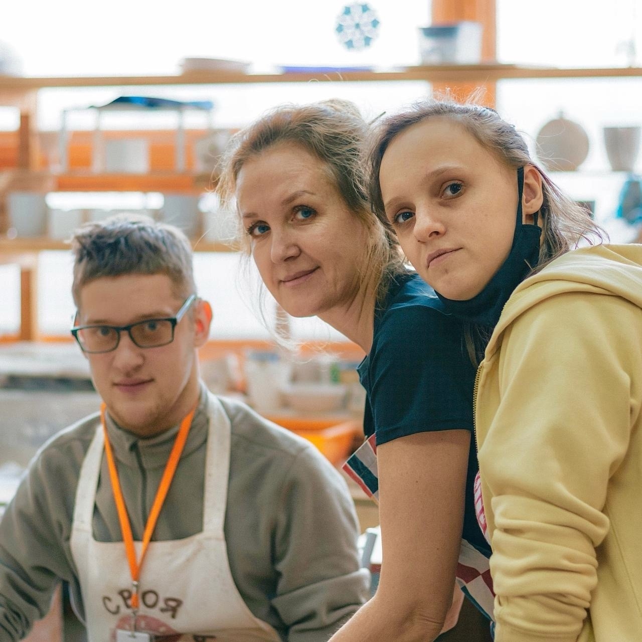 Когда 10 лет назад мы начинали организовывать керамическую мастерскую со слепоглухими людьми, рядом с ними всегда были те, кто помогает. Поначалу это были волонтеры — художники и просто любители рукоделия.