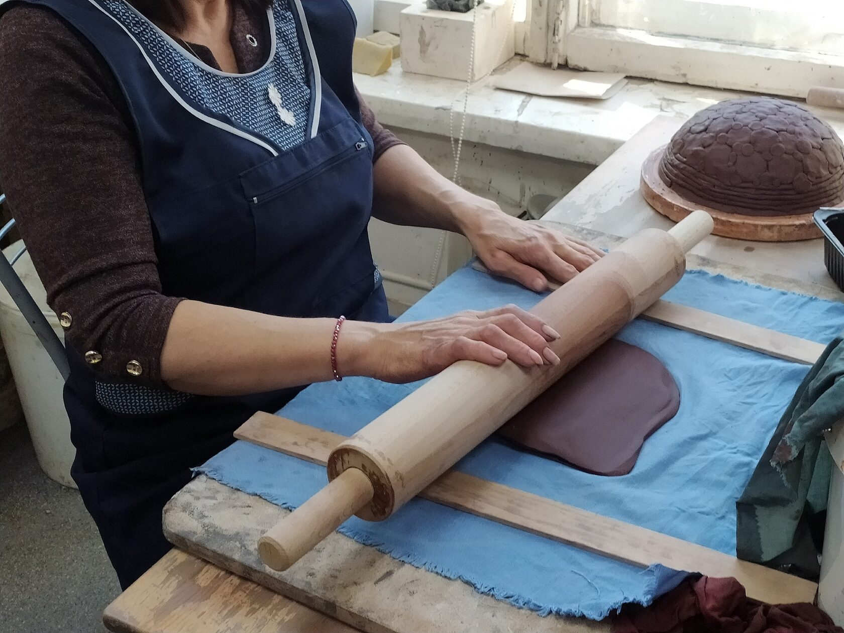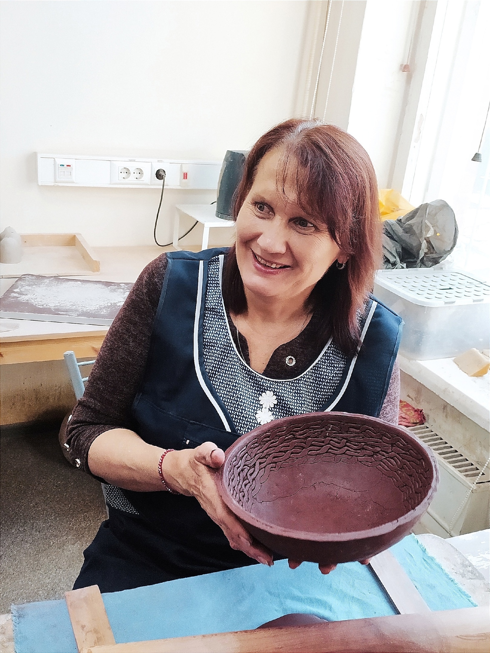 Света уже успела слепить из глины первое блюдо. Такие изделия должны быть лёгкими, и добиться этого непросто, но у Светы есть опыт. Посмотрите, как получилось! (На фото блюдо до обжига)