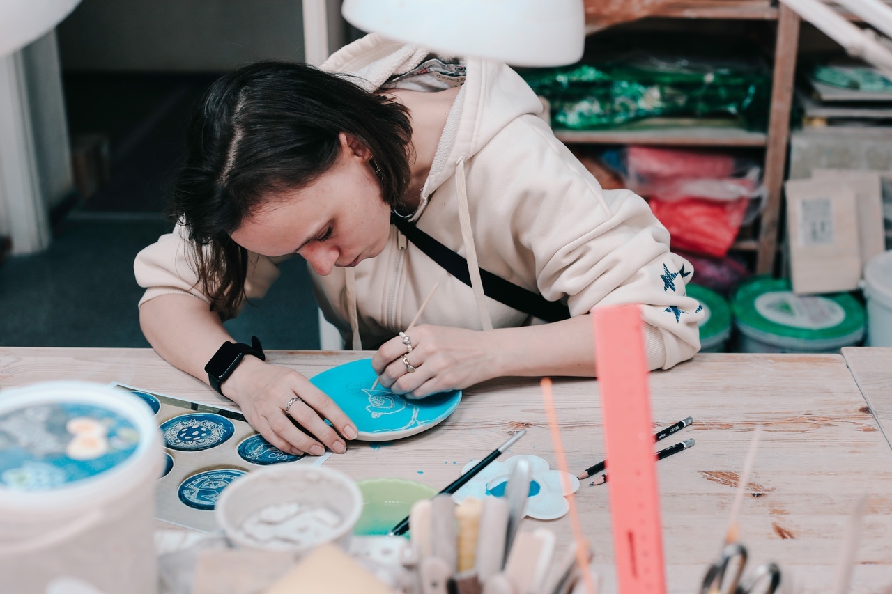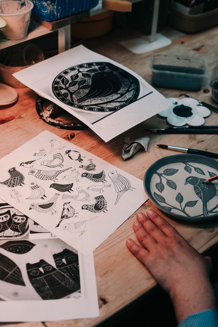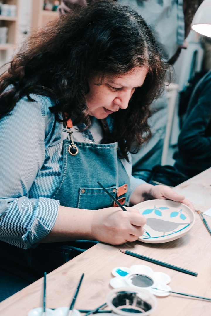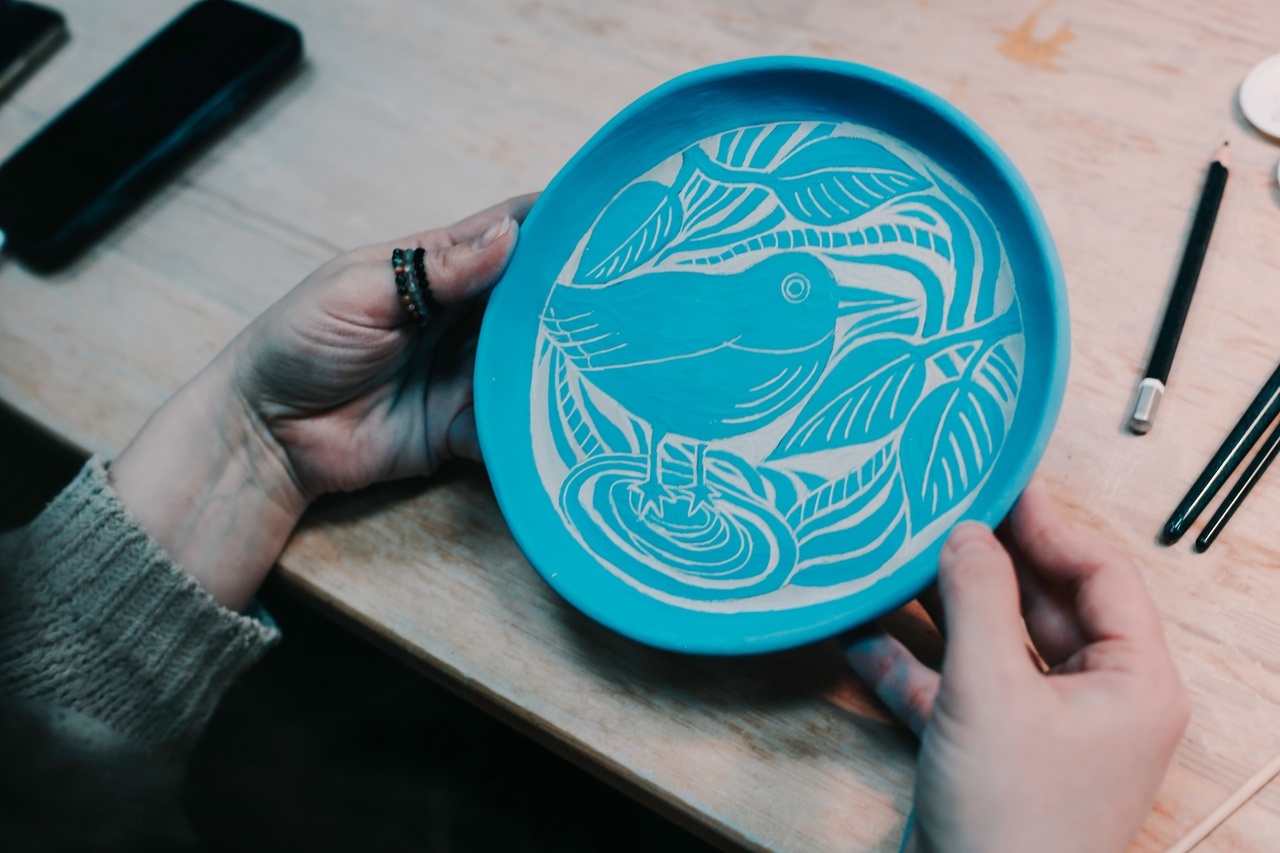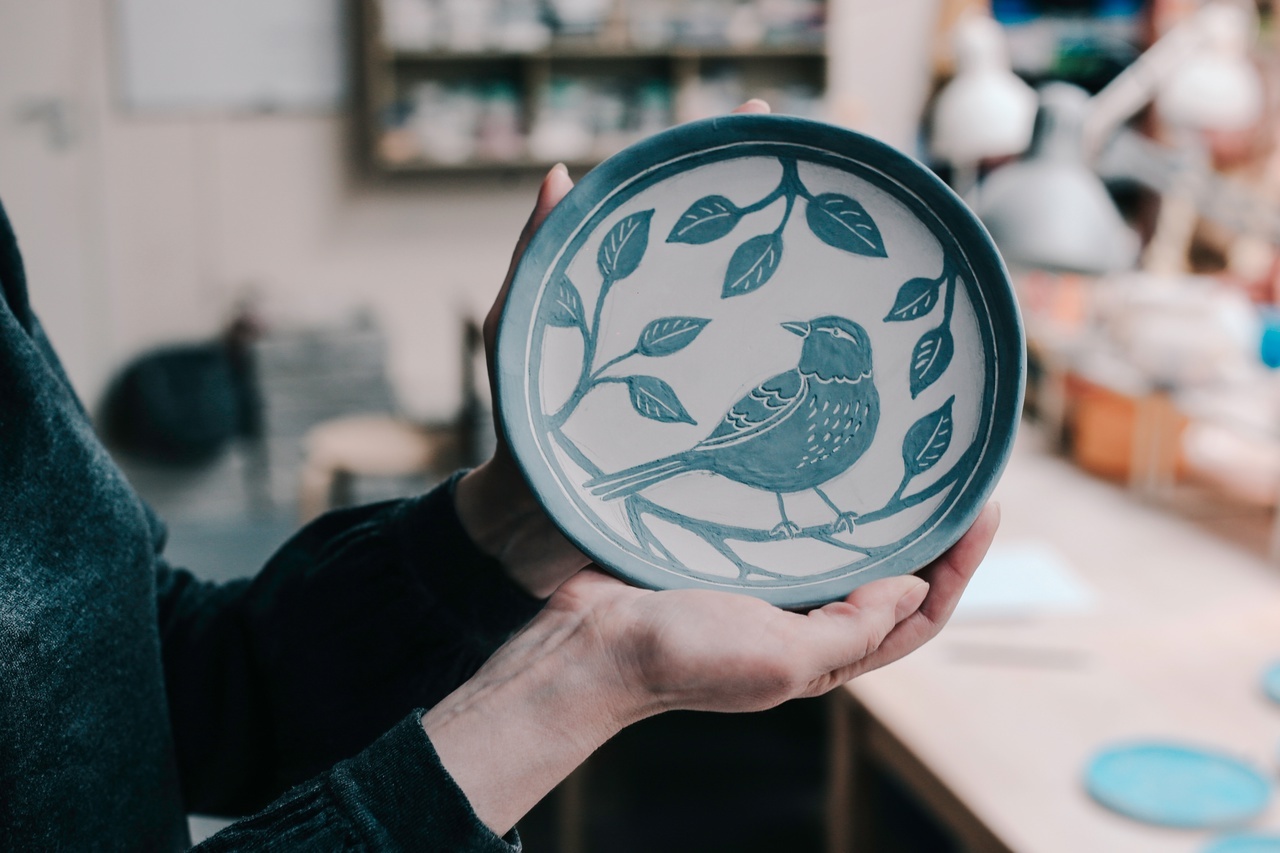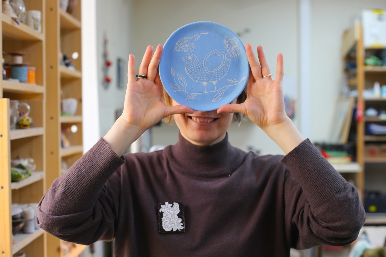 Последний апрельский мастер-класс по керамике оказался самым желанным: все билеты на него были зарезервированы ещё до основного анонса. Участники расписывали тарелки в технике сграффито. Посмотрите, каких красивых птиц получилось «процарапать»!