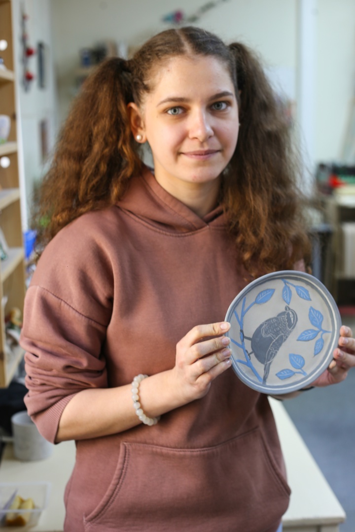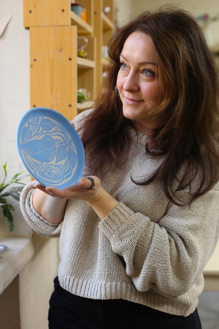 Поэтому для первого мастер-класса я выбрала тему мисочек-животных из комка. Это то, что делают ребята из мастерской Саши Дик и Лены Кореневой. Второй мастер-класс был посвящён технике сграффито, и эту технику используют ребята-художники, которых курирует Алла Соломоновна. Техника эффектна и проста, я считаю, что начать знакомство с декорированием керамики можно именно знакомясь с ней.
