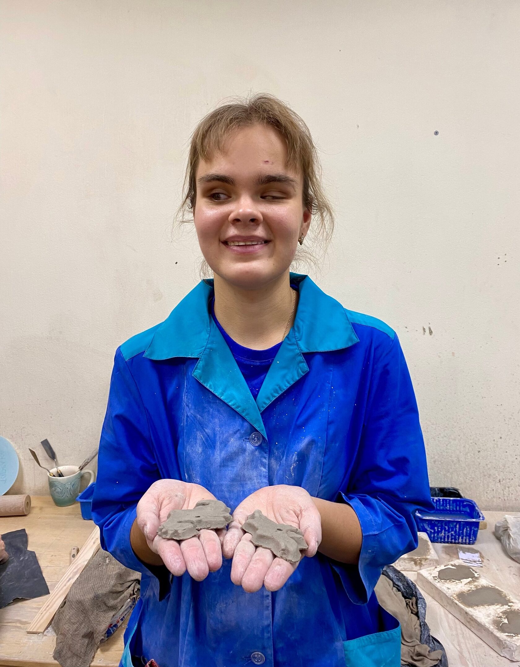 Тут пригодились навыки, которые Аня получила в школе — она ходила в знаменитую "Школу-интернат № 1 для обучения и реабилитации слепых". Там была студия пластилиновой живописи и педагог Наталья Евгеньевна Морозова - с ней Аня училась лепке.