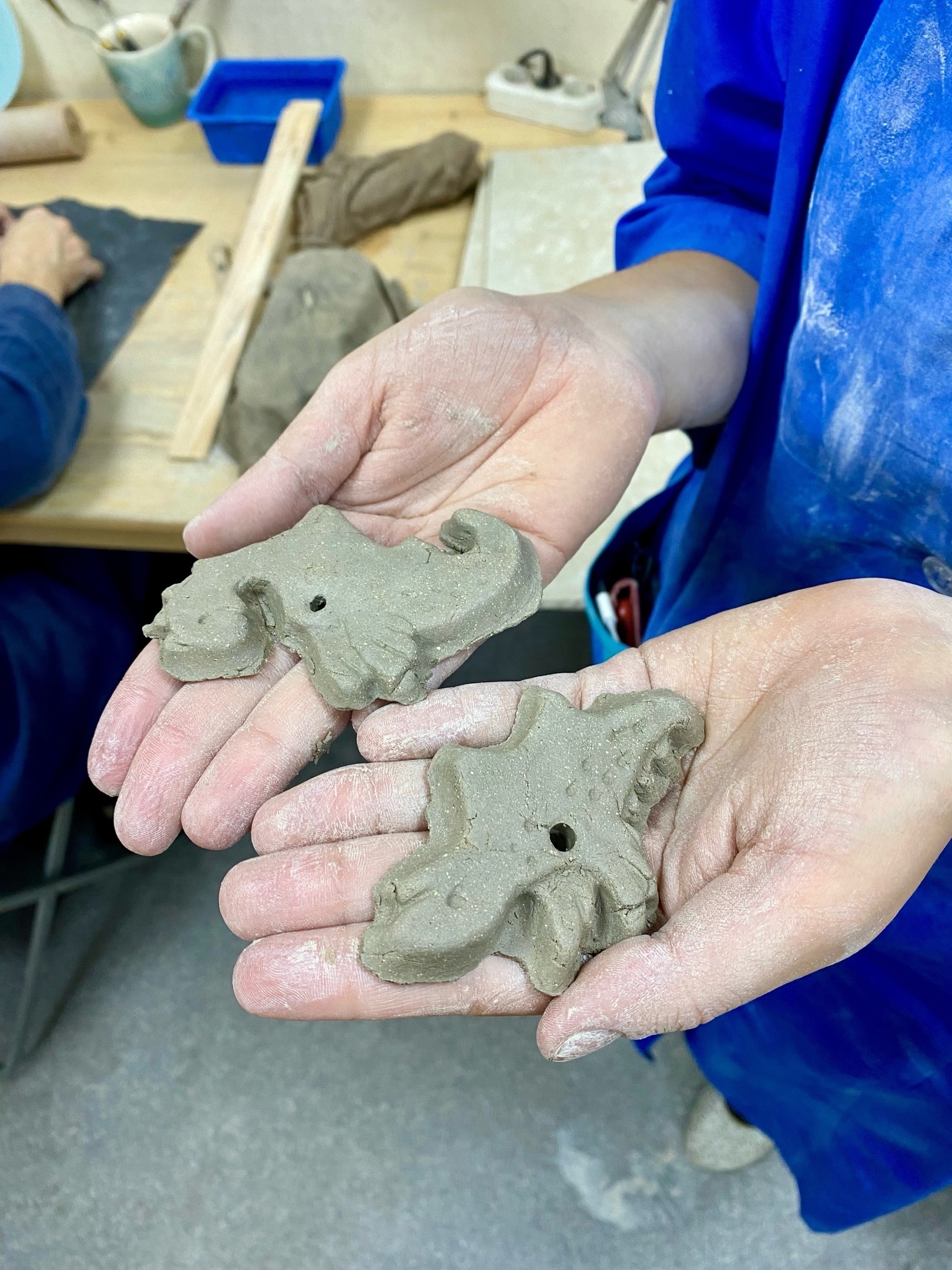 Сейчас, например, она лепит драконов по очень сложной форме. По идее зрячий человек должен помогать Ане делать дырочки, очищать изгибы, потому что эти дракончики создавались для человека, который видит. Но тут помогать не с чем — можете сами посмотреть на видео, как ловко Аня обращается с формой.