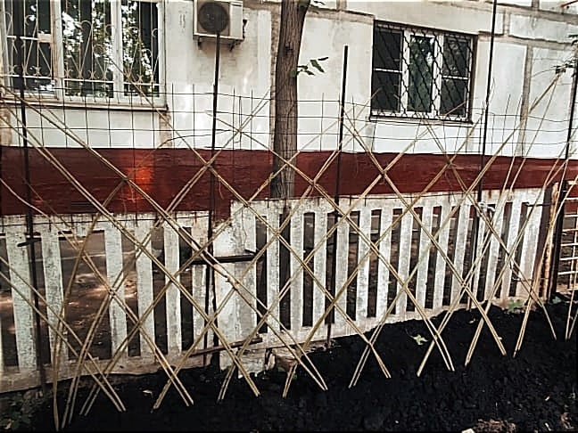1)Создание живой изгороди (фото 3). Скоро эти стволы разрастутся, и неказистый забор будет не узнать!