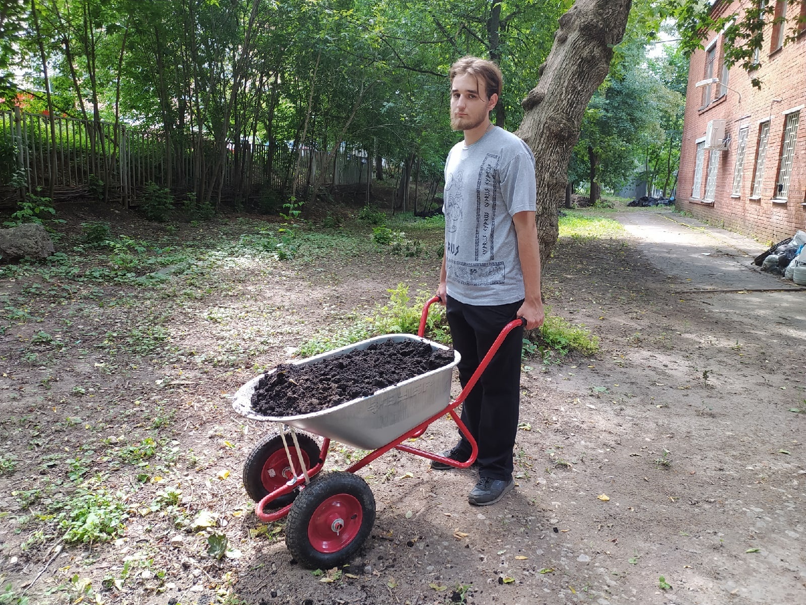 Выкопали грядки (земля была очень твёрдая) и засыпали их хорошим грунтом;