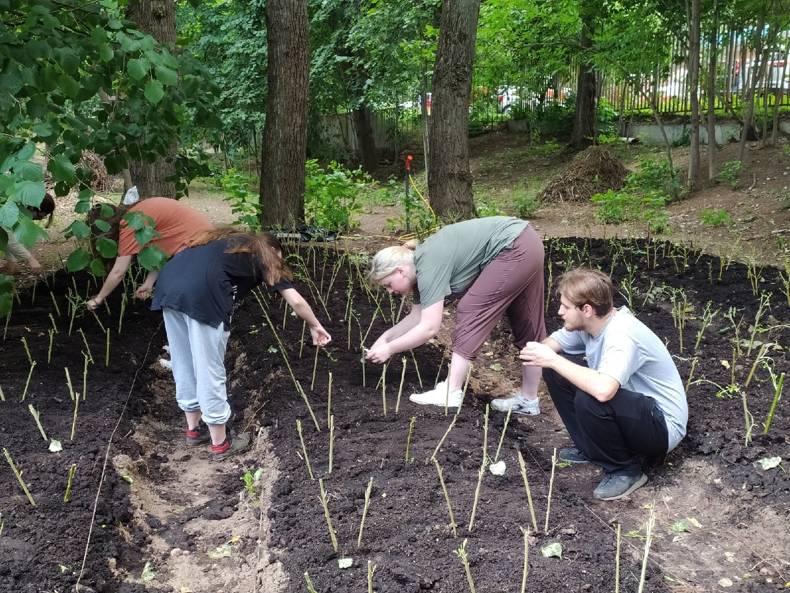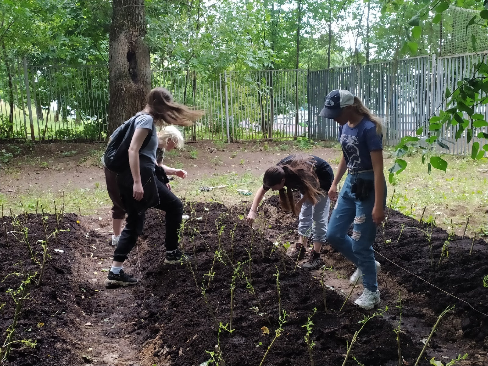 Процессом озеленения на Лобачевского руководит Наталья. Она уже 2 года работает в ТОКе: занимается лозоплетением с подопечными. Сейчас она курирует два проекта: