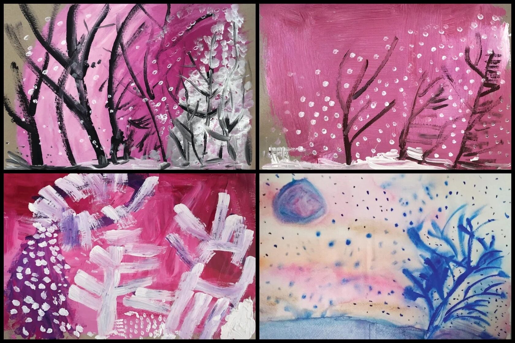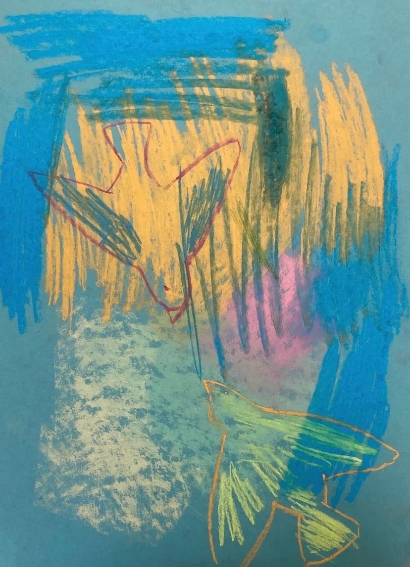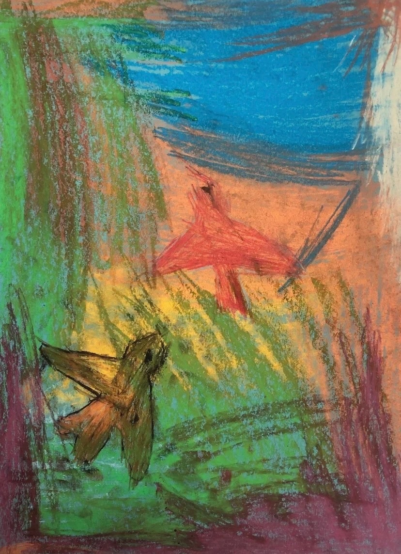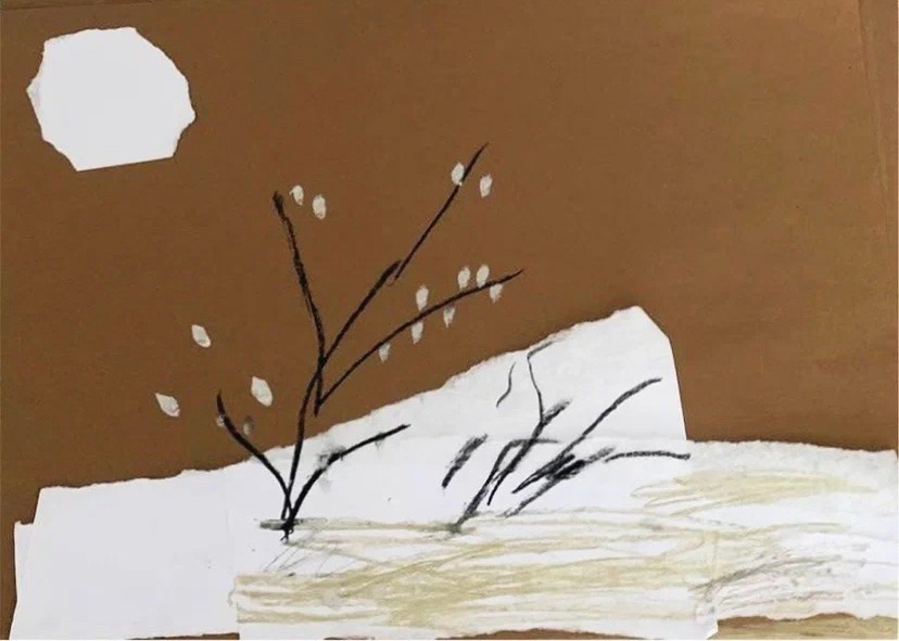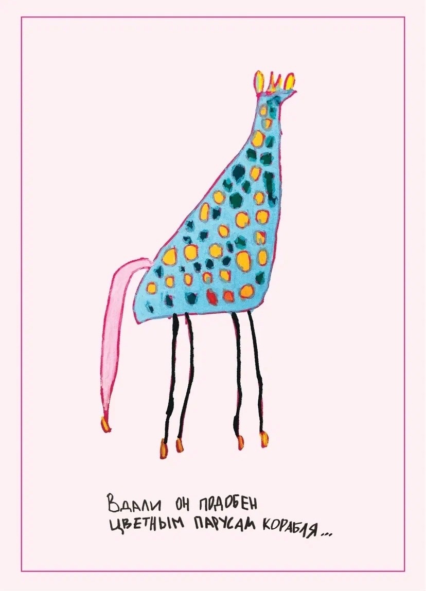 Зимние пейзажи, птицы, яркие абстрактные картины — и, конечно же, гумилёвский жираф, нарисованный Кариной.