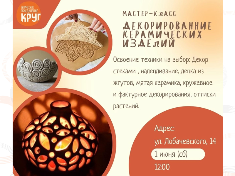 ⌚ 27 июля (суббота) с 13:00 — лепка изделия.