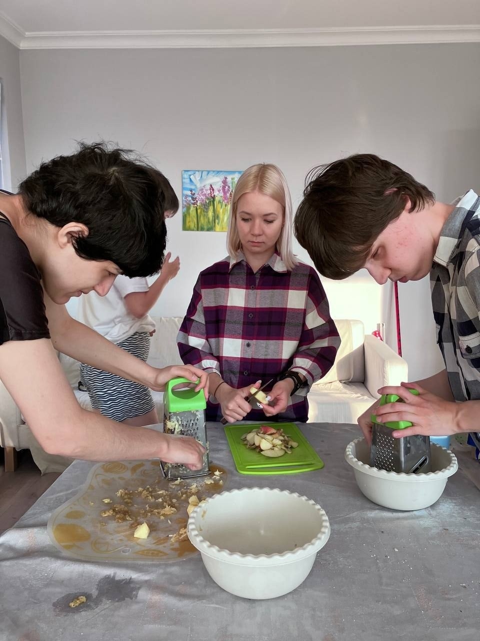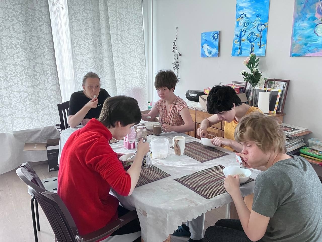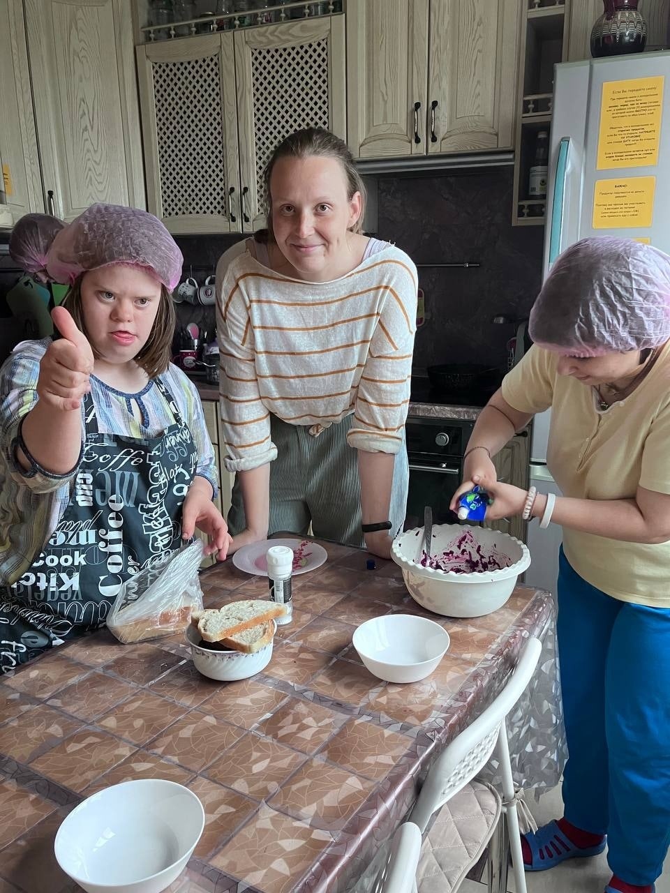 В мае на стажировку приезжали девушки-специалистки. Для каждой из них мы постарались подобрать занятость, связанную с их деятельностью в ДУЛ, и, кажется, получилось здорово! Например, Машу, мастера швейной мастерской, мы определили в текстильную мастерскую. “Меня очень вдохновила Светлана, куратор рукоделия: у нее столько идей и задумок! Я теперь тоже думаю что-нибудь новое придумать для нас, в Новгороде”, - говорит она. На занятиях Маша не только училась, но и классно выполняла тьюторскую работу, заводила разговоры, которые могли бы сплотить ребят и разрядить обстановку - получился настоящий обмен опытом. А вот Настя в ДУЛ ведет кулинарию, и ей было интересно посмотреть, как организован этот процесс у нас: как делают пастилу, батончики и всё такое. Особенно её заинтересовало, то, что в ТОКе кормят горячими обедами всех сотрудников (и гостей, конечно, тоже)). У ребят в Новгороде такого пока нет, но Настя теперь думает, как бы это устроить. Больше всего девушкам запомнилась волонтерская суббота: экскурсия Андрея Тевкина, поход в гости в квартиру сопровождаемого проживания, итальянская паста… А вот Катя с Надеждой, которые приехали на стажировку неделей позже, дежурили на квартирах сопровождаемого проживания целых три раза, попали на день рождения к Саше Иванникову из Некрасовки и даже участвовали в педсовете по квартирам сопровождаемого проживания (Катя дала нам столько советов, что теперь мы думаем, как бы ее тоже немного украсть)). Катя пишет об этом так: “Практика прошла очень насыщенно. Мы думали, нам просто покажут, как всё устроено, но в итоге удалось окунуться прямо в гущу событий. Очень интересно было посмотреть, как устроены квартиры, и потом обсуждать разные рабочие моменты с методистом. Классно, что у нас получилось настроить продуктивный контакт!” Нам тоже кажется, что фонды, занимающиеся похожим делом, должны дружить. Вместе мы сможем стать лучше