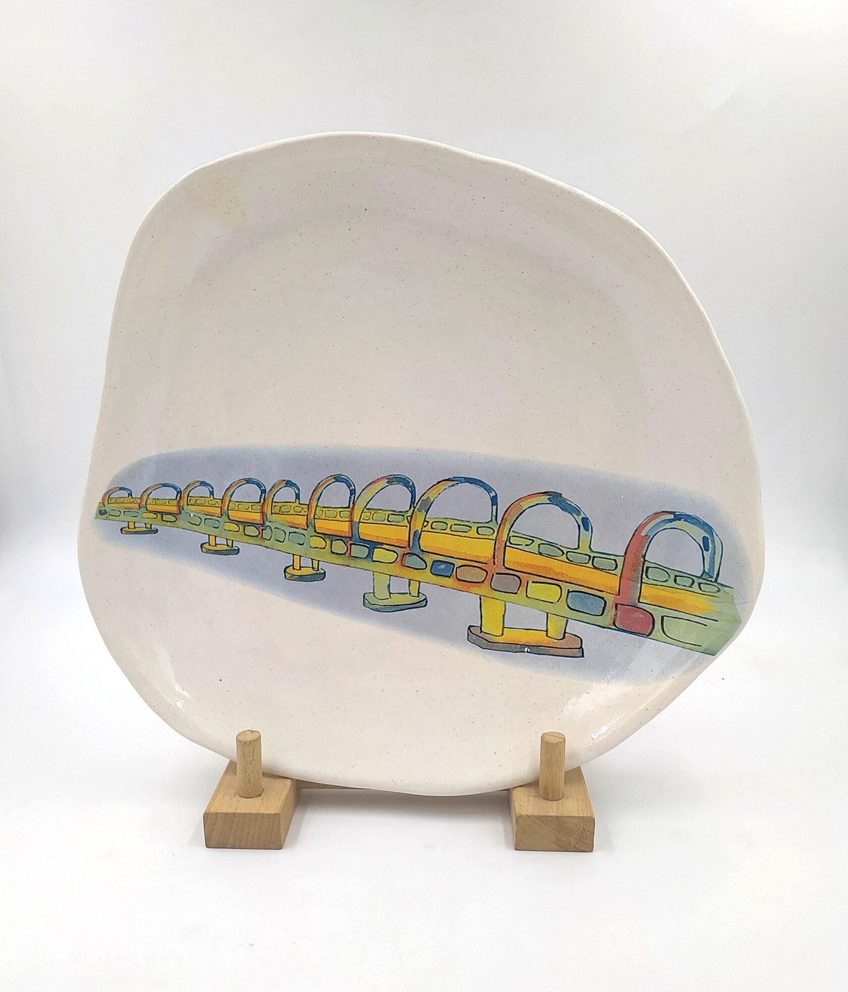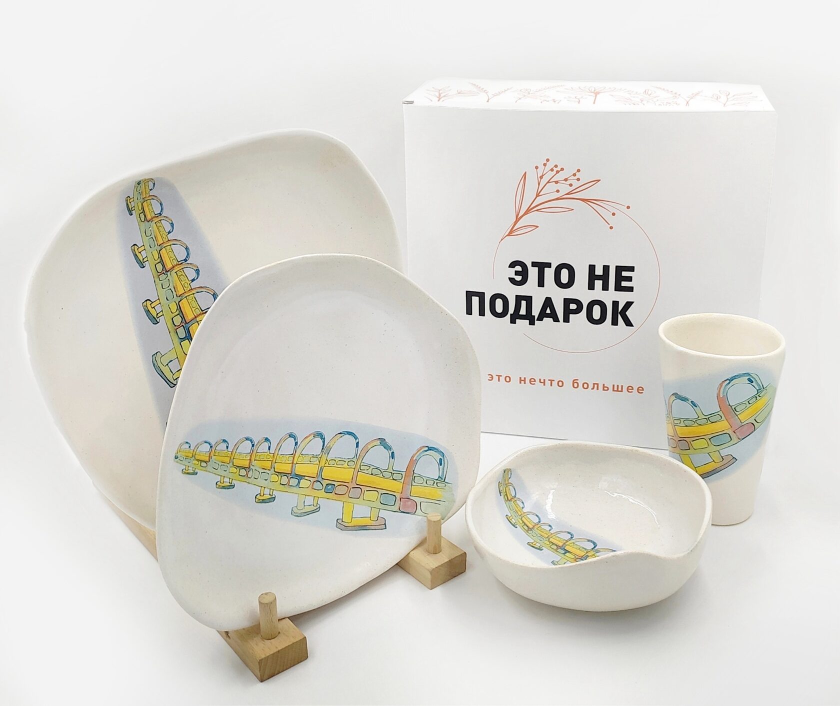 Это было непросто, но результат превзошел все ожидания! Самая сложная задача стояла перед художниками: им нужно было декорировать тарелки рисунком, вдохновленным изображением моста. Искусственных сооружений «в копилке» строительной компании много, поэтому большого труда стоило выбрать одно единственное и сделать это декоративно, при сохранении узнаваемости объекта. В итоге выбор пал на мост через Нижнетагильский пруд, знаковое для Свердловской области и всего Уральского региона искусственное сооружение, «вековую мечту» жителей Нижнего Тагила, как они сами его называют.